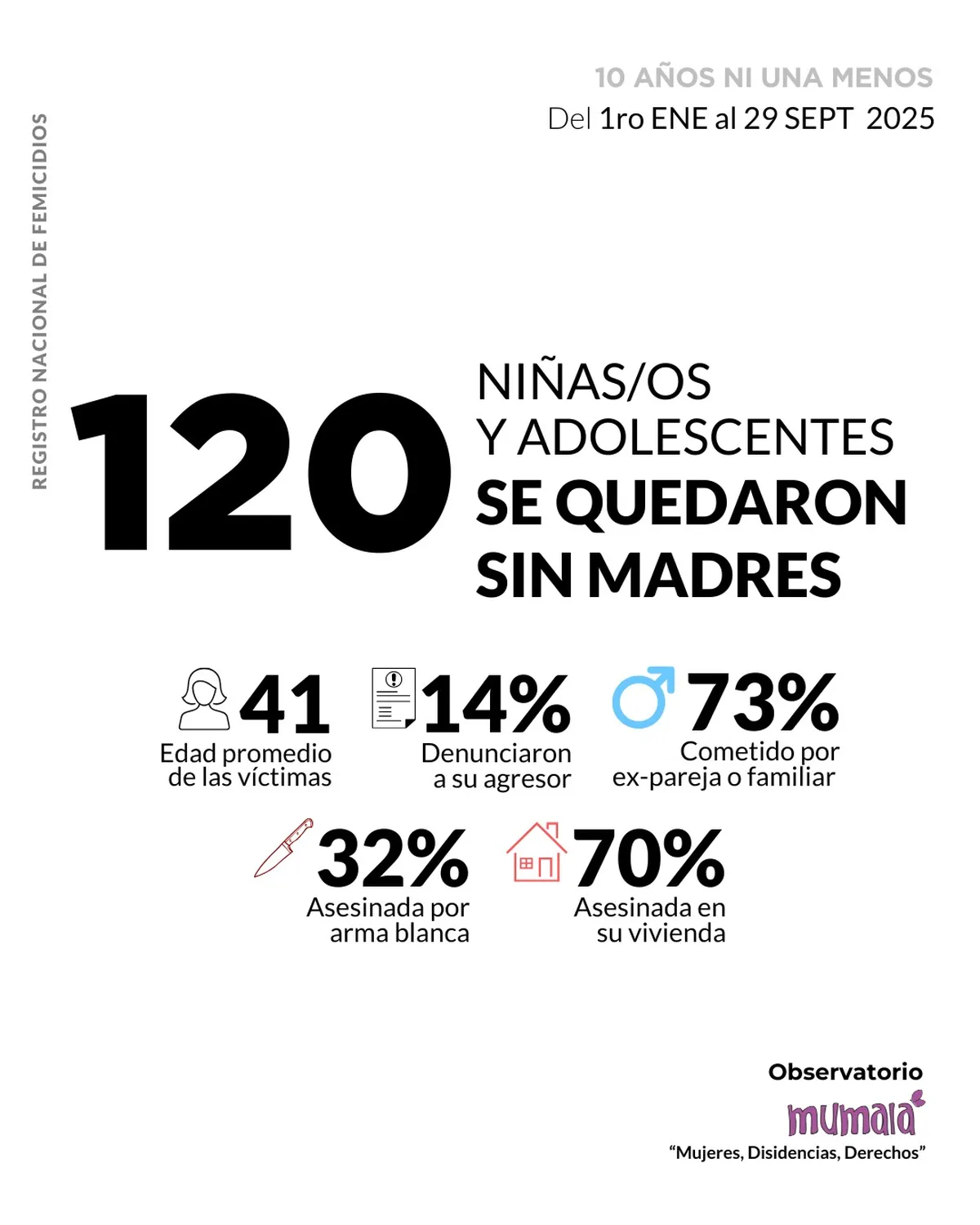 El 73% de los femicidios fueron cometidos por una ex pareja o familiar. Además, otro factor a considerar: son 120 los niños, niñas y adolescentes que quedan sin madre.