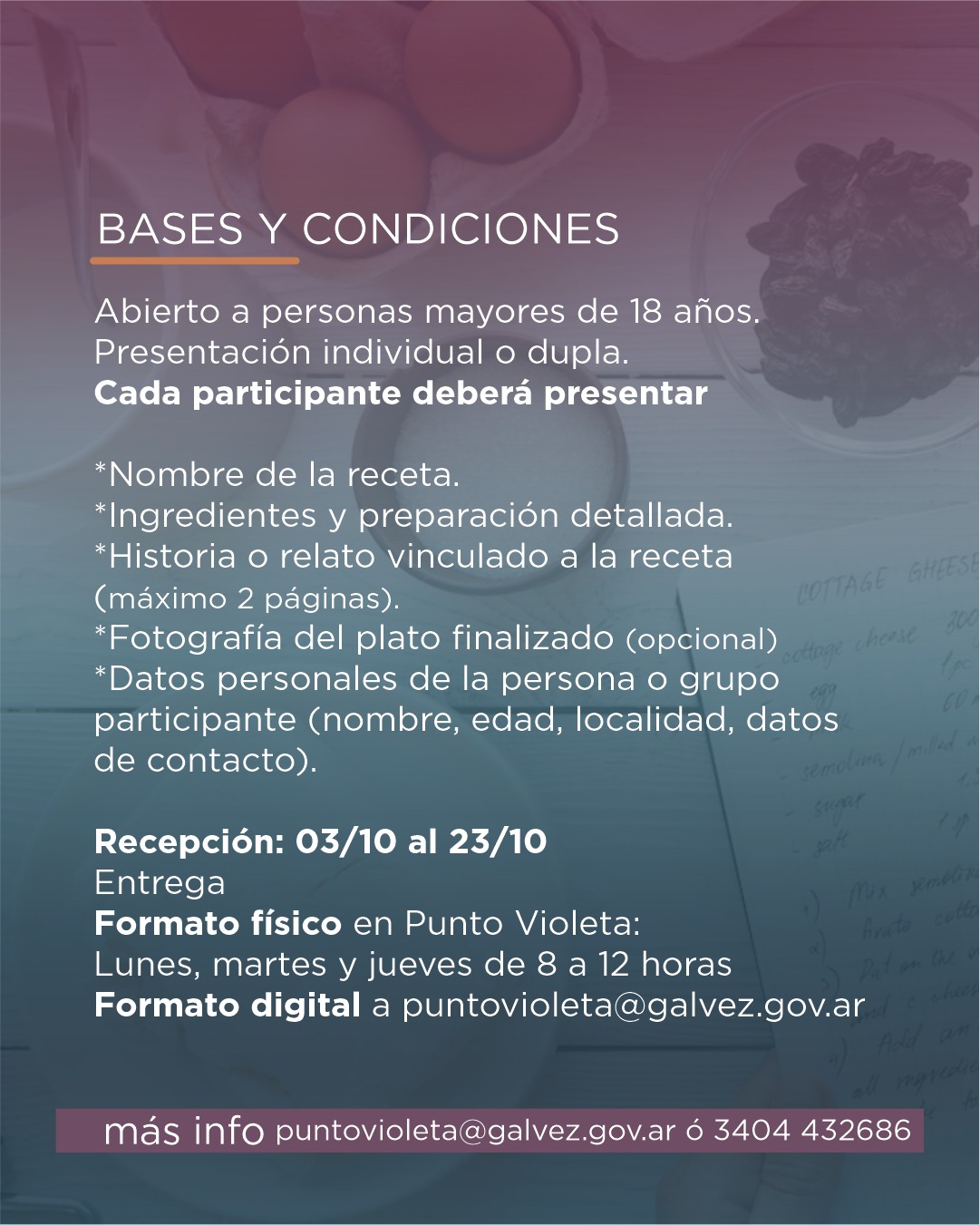 Informes e inscripciones en el Punto Violeta o al mail: puntovioleta@galvez.gov.ar.