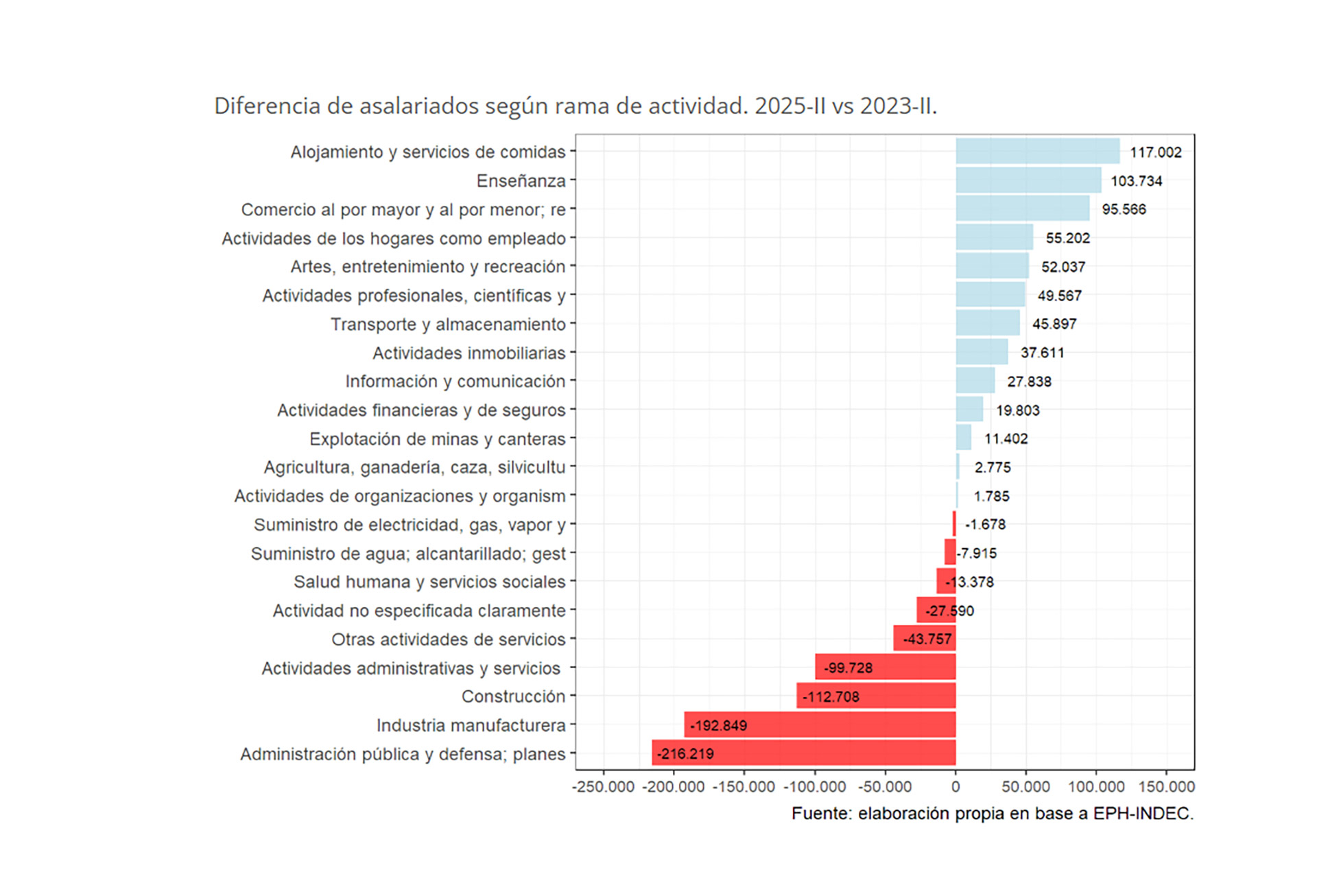 El informe identificó un “Efecto de Flexibilidad” a través del cual los cuentapropistas, quienes pueden ajustar sus precios o tarifas con más agilidad que un asalariado formal, “lograron mejorar su ingreso real relativo frente a la canasta básica durante la desaceleración inflacionaria. Esto resultó en una reducción de la pobreza entre los cuentapropistas no calificados (del 38,8% al 36 por ciento)”.