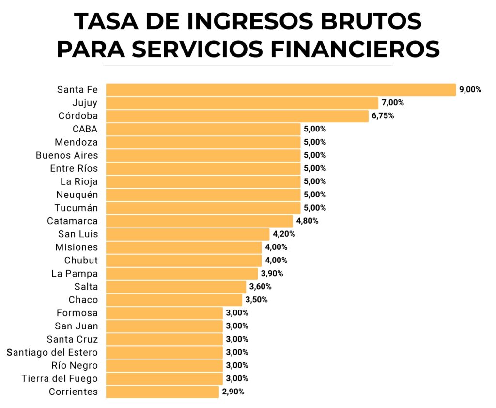 La discusión que llevan adelante el Gobierno y las provincias por la presión impositiva tiene en el centro a Ingresos Brutos, un tributo definido por cada distrito, cuya tasa varía en cada actividad. Esta semana, Santa Fe aprobó una reforma fiscal que la elevó del 5% al 9%, lo que generó un reclamo por parte de la Cámara Argentina Fintech sobre cómo las provincias están llevando adelante “una persistente y creciente presión tributaria” que limita la prestación de servicios y reducen el acceso al crédito.