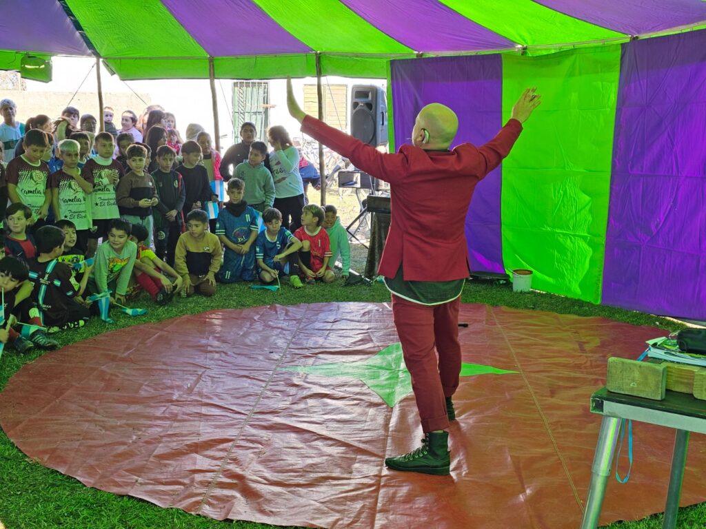 Además del espectáculo de Galupa y sus amigos, los chicos disfrutaron de un chocolate caliente “la idea es compartir un día diferente, pintado de celeste y blanco, reivindicar el valor que tiene nuestra bandera, nuestra insignia patria y sobre todas las cosas disfrutarlo con los niños desde otro lugar, porque el circo es un espectáculo motivador que los aparta un poco de la pantalla, del celular, y estamos al aire libre, en un día hermoso, así que todo con mucha alegría”. Agregó.