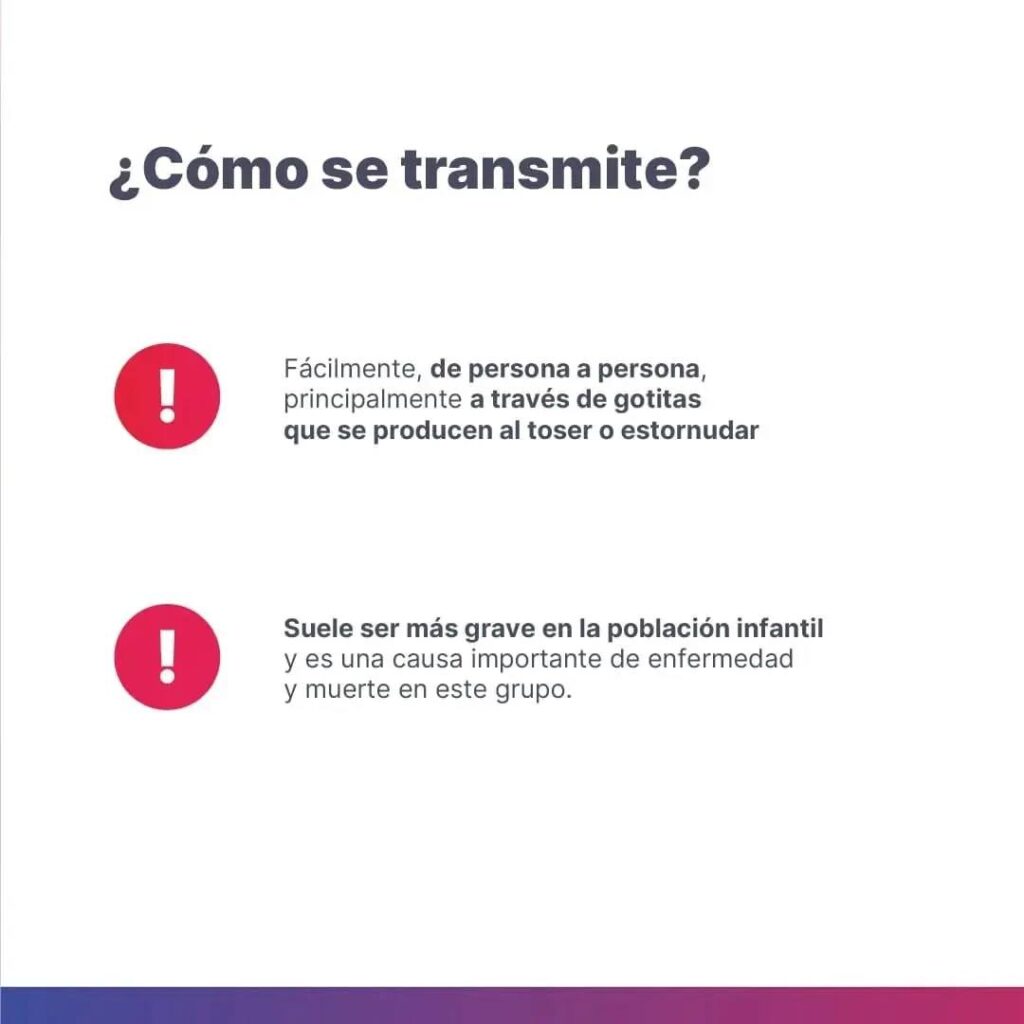 Se transmite fácilmente de persona a persona, principalmente a través de gotitas que se producen al toser o estornudar. Suele ser más grave en la población infantil y es una causa importante de enfermedad y muerte en este grupo.
