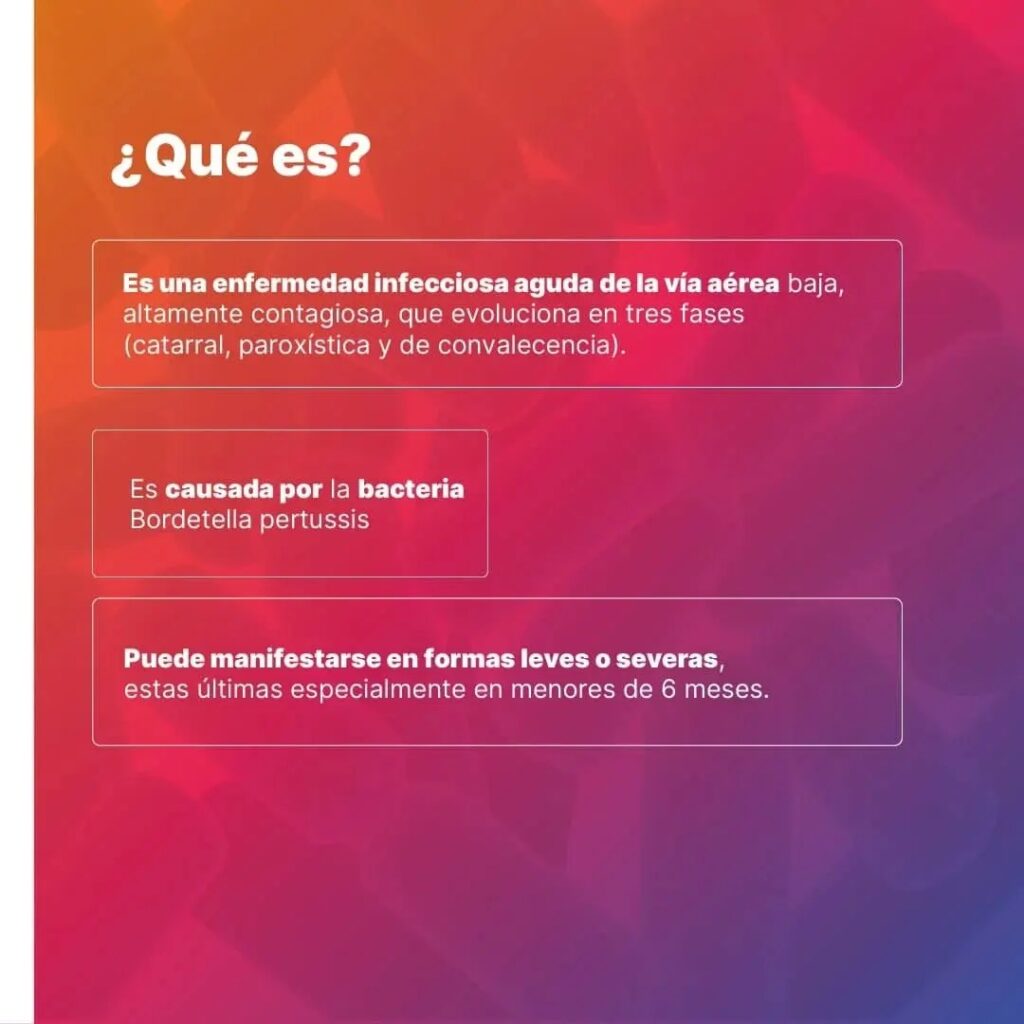 La coqueluche (tos convulsa o tos ferina), es una enfermedad infecciosa aguda de la vía aérea baja, altamente contagiosa, que evoluciona en tres fases (catarral, paroxística y de convalecencia) y puede manifestarse en formas leves o severas, estas últimas especialmente en menores de 6 meses. Es causada por la bacteria Bordetella pertussis. También B. parapertussis, puede causar tos convulsa, pero por lo regular resulta ser de sintomatología más leve y es inmunoprevenible.